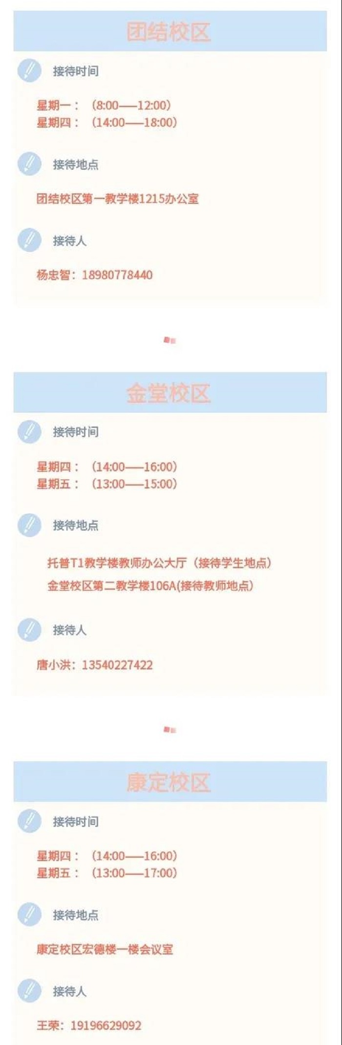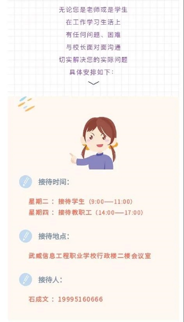 除了接待日現(xiàn)場接待以外,院校長們還24小時接受老師們和同學(xué)們的 短信 消息,竭盡全力解決大家的后顧之憂。