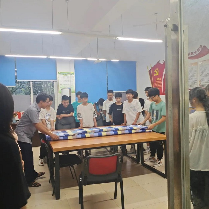 作為宿管科科長,楊老師深知剛剛離開父母的學(xué)生很多事情還不能獨立做好,缺乏自我管理能力,甚至連被子都很難疊放整齊。因此,每當(dāng)新生入校的時候,楊老師總會抽出時間,為同學(xué)們講解內(nèi)務(wù)標(biāo)準(zhǔn),教導(dǎo)同學(xué)放置物品、整理被褥,親自動手示范,讓同學(xué)們養(yǎng)成良好生活習(xí)慣,創(chuàng)建健康和諧宿舍。