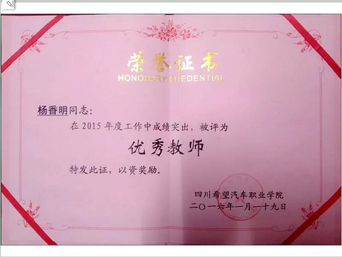 他是宿管科科長、機械制造工程師楊香明老師,2008年3月入職希望教育集團,先后在成都五月花計算機專業(yè)學(xué)校擔(dān)任專職教師、班主任,2013年隨專業(yè)調(diào)整進入四川希望汽車職業(yè)學(xué)院,2016年學(xué)院在四川希望汽車職業(yè)學(xué)院的基礎(chǔ)之上,增掛了四川希望汽車技師學(xué)院,楊香明老師作為專業(yè)骨干調(diào)入四川希望汽車技師學(xué)院。