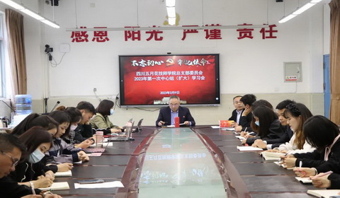3月9日,四川五月花技師學院黨總支召開2023年第一次中心組(擴大)學習會議,學院全體黨員、入黨積極分子、處級及以上干部參加本次會議,會議由黨總支書記劉高全主持。會上,茍利同志領學了黨的二十大報告學習.