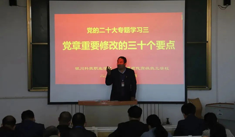 為提升教職工政治站位,認(rèn)真學(xué)習(xí)和貫徹落實黨的二十大相關(guān)會議精神。11月4日,寧夏現(xiàn)代高級技工學(xué)校組織全體教職工開展學(xué)習(xí)黨的二十大報告和新修訂黨章內(nèi)容培訓(xùn)活動。會上,校黨總支書記周樹農(nóng)為大家整理了《二十.